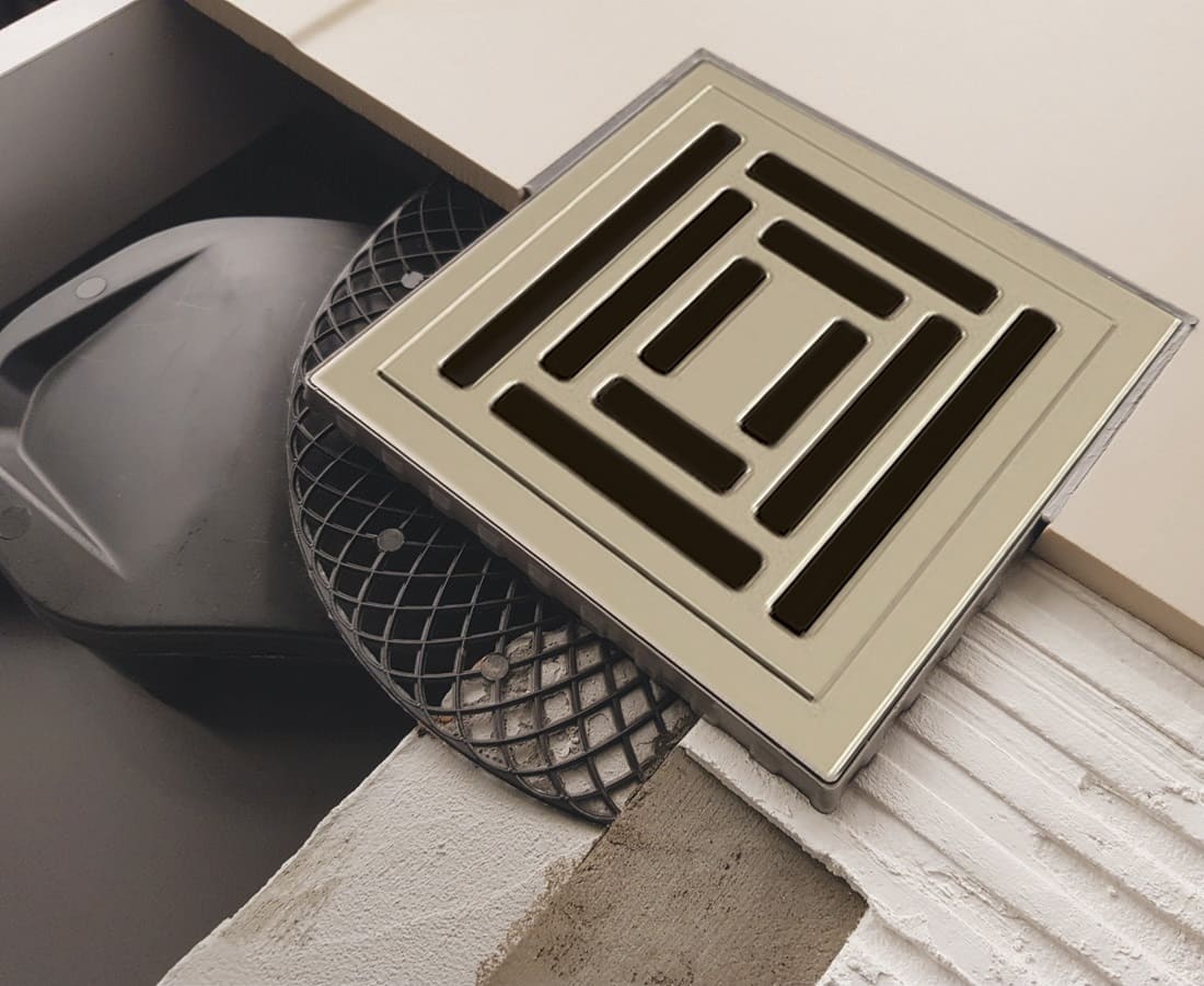Трап BERGES водосток PLATZ Uno 100х100, матовый хром, S-сифон D50 H60 боковой