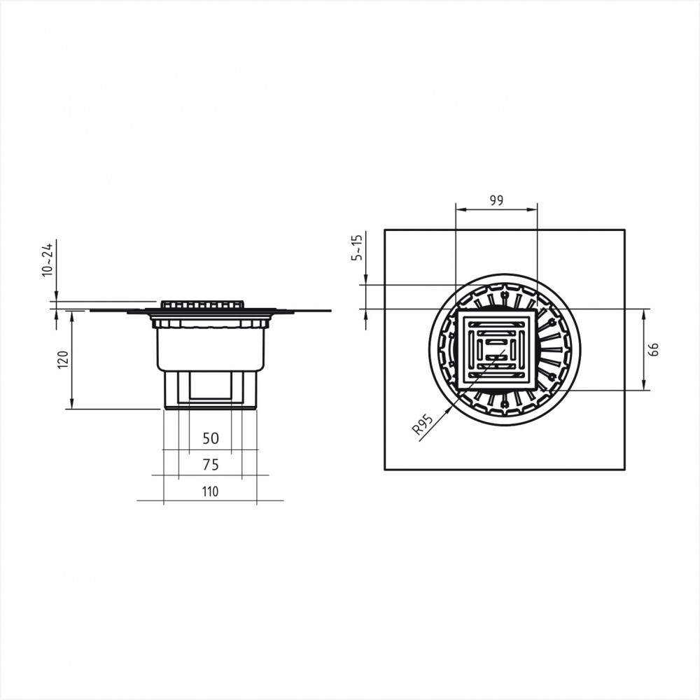 • Корпус трапа с интегрированной гидроизоляционной мембраной, гарантирующей герметичность.