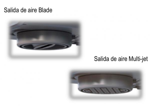 Multijet имеет круглую поверхность и 31 небольшое отверстие для выхода воздуха. Это новшевство предназначено для бережной сушки рук с эффектом массажа, к тому же это снижает уровень шума на 20%, что будет очень важным для небольших ресторанов и кафе, где сушилка часто пугает посетителей.