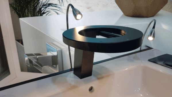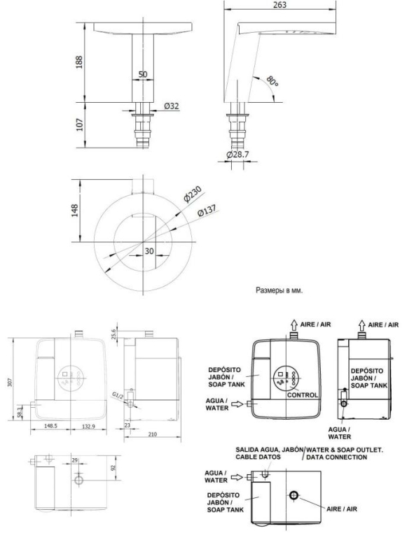 Установка на столешницу с сушилкой для рук, дозатором для мыла и краном для воды. Цвет черный матовый. Размеры установки 317,5х230х268 мм. Мощность сушки составляет 1200 W, что позволяет высушить руки за 8-15 секунд. Корпус устройства сделан из алюминия и латуни. Смеситель может регулировать поток воды от 3 до 7 литров в минуту. Конструкция имеет 3 раздельных сенсора для активации воды, подачи мыла и сушилки для рук. Уровень шума 65 ДБ. Аппарат поставляется с НЕРА фильтром в комплекте.
