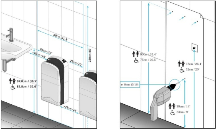 Разработанная на заводе Nofer система anti-splash позволяет просто опустить руки в сушилку, больше не надо делать движения руками вверх и вниз. Еще одним преимуществом данных сушилок является широкий выбор цвета.