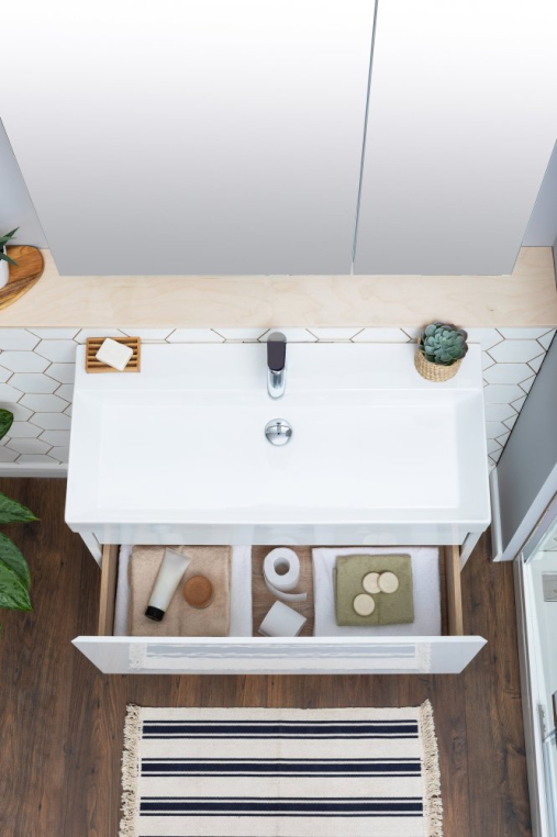 Внутренние детали выдвижного ящика в цвете дуб сонома В системе выдвижения использована фурнитура Hettich