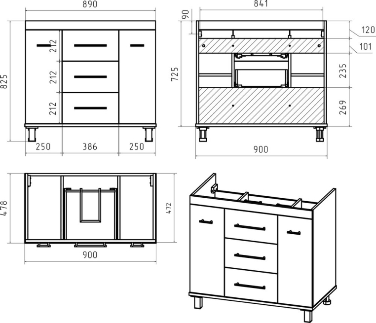 Комплект мебели Misty Терра 90 белая (П-Тер01090-0113Я+ФР-00002613+П-Тер02090-011)