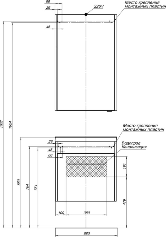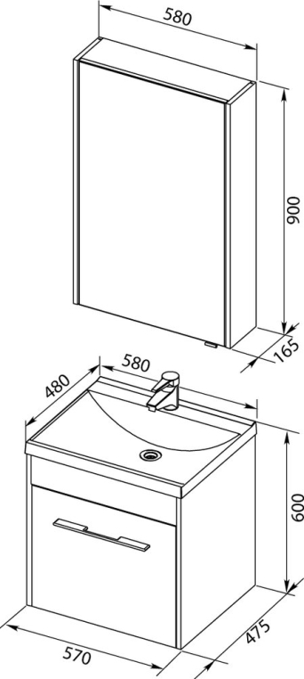 Комплект мебели Aquanet Августа 58 белая (210026+00281220+210008)