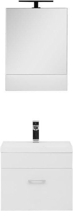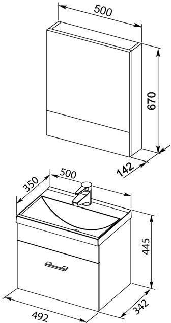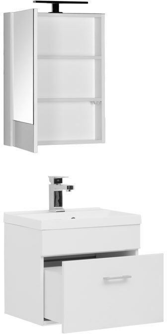 Мини-набор мебели Акванет Нота 50 предназначен для тех, чья ванная комната не располагает большими габаритами. Неглубокая навесная тумба с ящиком для хранения – оптимальный вариант для миниатюрной раковины. Зеркало с направленным светильником из металла скрывает в себе компактный шкафчик с полками, в котором можно хранить часто используемые гигиенические принадлежности и средства. Добавляя в интерьер света, зеркало визуально увеличивает пространство. Нейтральные тона гарнитура позволят сочетать его с интерьерами любой цветовой гаммы. Вы также можете дополнить гарнитур навесным пеналом, чтобы расширить зону хранения ванной комнаты.