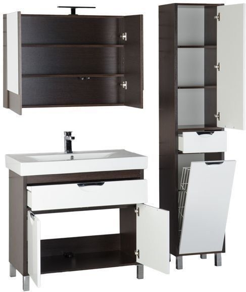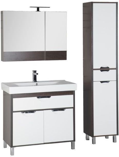 Массивный комплект для ванной комнаты Акванет Гретта 90 и придется по вкусу ценителям экстравагантных и модных интерьеров. Оригинальная форма ручек ящиков и свежий взгляд на привычные формы сразу выделяют Гретту, делая ее центром внимания ванной комнаты. В напольной тумбе предусмотрено большое отделение с распашными дверцами и широкий ящик под раковиной-столешницей. Настенное зеркало также представляет собой вместительный шкаф, в котором традиционно размещают лекарственные и гигиенические средства. Дополните комплект высоким напольным пеналом и ваша ванная комната обретет завершенный, стильный вид.