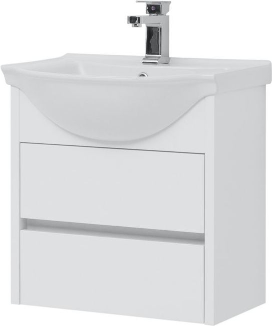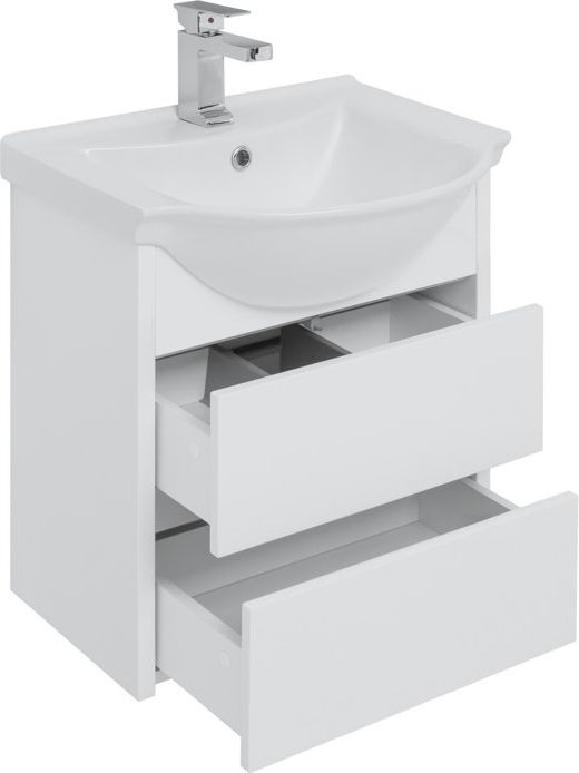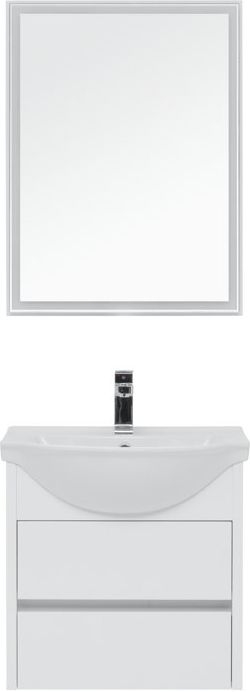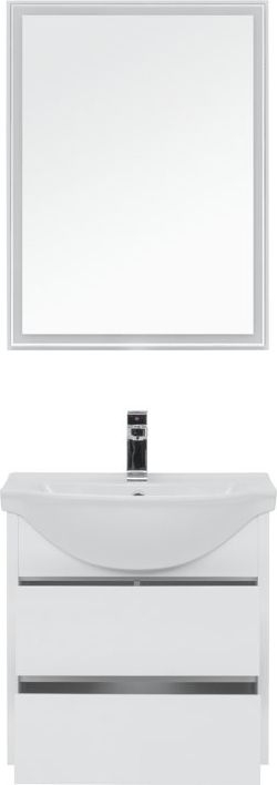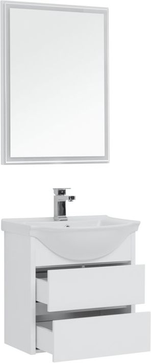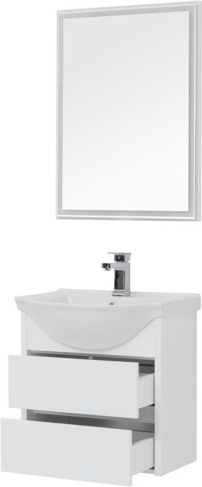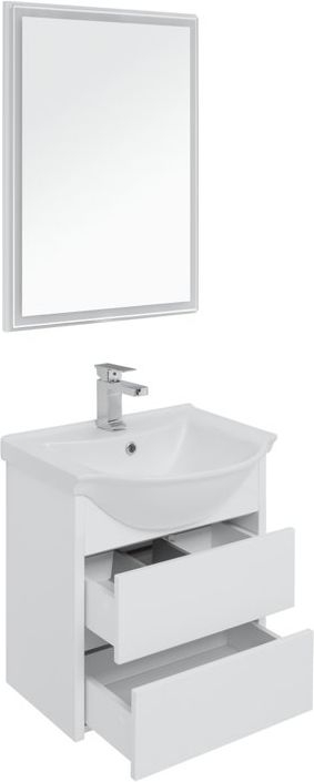 Мебель для ванной Aquanet Сидней 60 в белом глянце отличается простотой форм. В тумбе нет сложных фрезеровок на фасадах, декоративных деталей и элементов, уход за которыми требует дополнительных усилий. И даже ручки в этой модели интегрированные, то есть они являются своего рода частью фасада. Ящики тумбы обладают особой конструкцией, которая позволяет легко открывать за фасад снизу верхний ящик, а сверху – нижний. Плавность хода при открывании и закрывании ящиков обеспечивают направляющие с доводчиком, дополнительно на тумбе установлены амортизаторы. Комплектуется тумба раковиной «Аква» производства завода «Кировская керамика», сочетающей в себе современный дизайн, безупречную белизну, эргономичность и привлекательную цену. Раковина имеет защитный бортик по всему периметру, элегантный тонкий край, позволяющий использовать всю чашу раковины, и площадки, на которых можно разместить аксессуары или предметы личной гигиены. Преимуществом тумбы является и то, что ее можно при желании или монтировать на стену, или установить на ножки, докупив стандартный вариант из четырех хромированных опор. Также можно прибегнуть к комбинированному варианту установки, закрепив тумбу на стену и использовав в качестве дополнительной опоры две ножки. Причем, при разных вариантах крепления тумба приобретет несколько иное звучание. В комплект входит также зеркало из коллекции Nova Lite с LED-подсветкой по периметру.