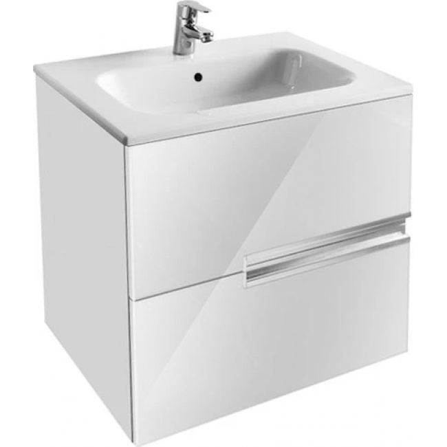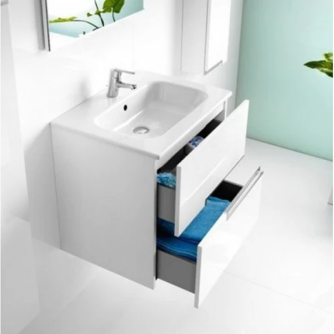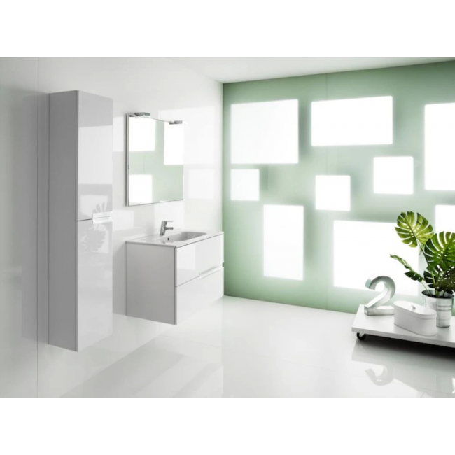 Victoria Nord Ice Edition – стильный и удобный гарнитур от испанской компании Roca . Он позволит рационально использовать пространство небольшой ванной. Мебель изготовлена из влагостойких материалов и рассчитана на длительную эксплуатацию в условиях повышенной влажности. Покрытие эмалью устойчиво к истиранию и не желтеет со временем. Комплект предоставляет достаточно места для хранения: в двух вместительных ящиках тумбы и на полках подвесного шкафа. Встроенный светильник и надежная фурнитура с механизмом плавного закрывания обеспечивает комфортное использование. В комплекте – прямоугольная фаянсовая раковина с широкими бортиками