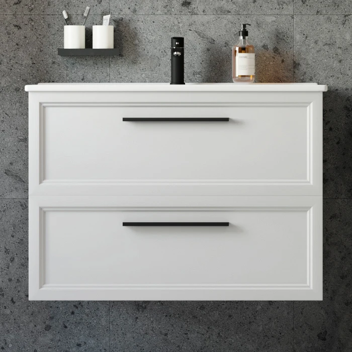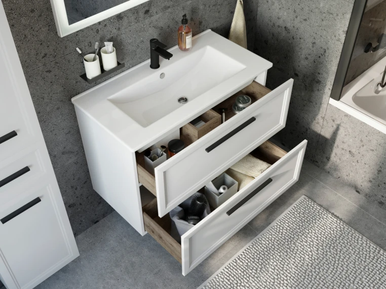 Уважаемые покупатели! Обратите внимание — в комплектации тумбы идут черные ручки. При желании установить белые или в цвете хром, необходимо приобрести их отдельно.