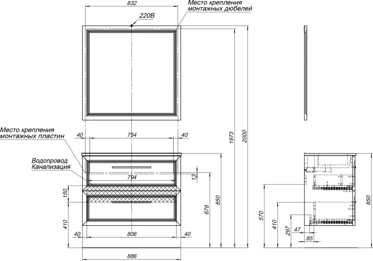 Габариты (Ш Г В): 88,6x2,2x85 см