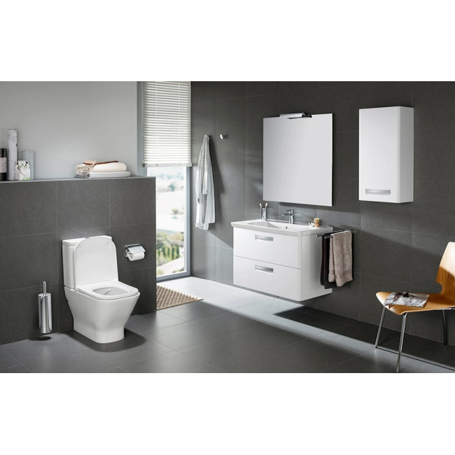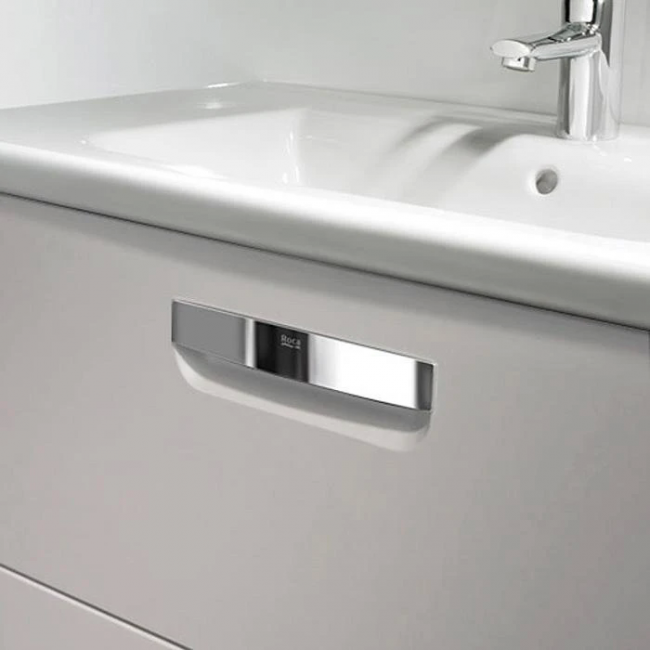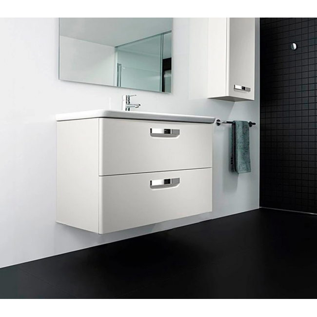 Разработанная именитым дизайнером Антонио Булло мебель Roca Gap 80 прекрасно впишется в ванную комнату в современном стиле. Комплект состоит из зеркала с подсветкой, стильной фаянсовой раковины и подвесной тумбы с двумя ящиками. Лаконичная форма в белом исполнении придает гарнитуру актуальное звучание. Зеркало оборудовано светодиодной подсветкой и антизапотевателем, который сохраняет изображение чистым даже при высокой влажности. Выдвижные секции тумбы с алюминиевым основанием закрываются при помощи доводчиков. Встроенный сифон Jimten не нарушает целостности секций. Тумба шириной 80 см вместительна, в нее можно уместить весь запас предметов гигиены, которые могут понадобиться в ванной