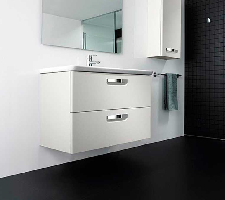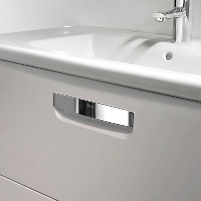 Дизайнерская мебель Roca Gap 80 – элегантное решение для ванной комнаты. Мебельный комплект состоит из зеркала с подсветкой, раковины и подвесной тумбы с двумя ящиками. Выверенная прямоугольная форма в сочетании с холодным блеском белого глянца придает гарнитуру актуальное звучание. Все элементы отличаются практичностью. Зеркало оборудовано подсветкой и антизапотевателем, который сохраняет изображение чистым даже при высокой влажности. Выдвижные секции тумбы закрываются с помощью доводчиков. Встроенный местосберегающий сифон Jimten не нарушает целостности секций. Тумба достигает в ширину 80 см, что позволяет свободно хранить в ней многочисленные предметы гигиены