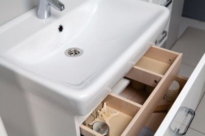 Мебель для ванной «Акватон Америна Н 70» благодаря своей компактности впишется даже в небольшую ванную комнату. Тумба имеет два выдвижных ящика. В верхний встроен дополнительный скрытый ящик, удобный для хранения мелочей. Внешние ящики установлены на направляющие нижнего крепежа, которые обеспечивают плавный ход элементов. В зеркальный фасад шкафа встроен светильник с электровыключателем