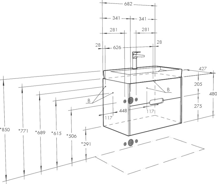 Комплект мебели Aquaton Оливия 70 грей/дуб ойстер (1A2543K0OLUG0+1A254502OL010)
