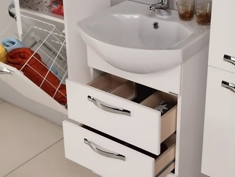 Компания «Акватон» представляет коллекцию мебели для ванной «Ария» белого цвета. В гарнитур входят тумба с раковиной, зеркало и шкаф-пенал. Они изготовлены из ламинированной ДСП и эмалированной МДФ. Тумба комплектуется глубокой удобной раковиной из фаянса. Кроме того, в нее установлены три ящика, один из которых (верхний) – с разделителями для комфортного хранения мелких вещей. Каждый из них оснащен доводчиками для бесшумного закрывания. Мебель поставляется с необходимыми для монтажа креплениями и опорными ножками. Производитель дает гарантию на изделие сроком 3 года