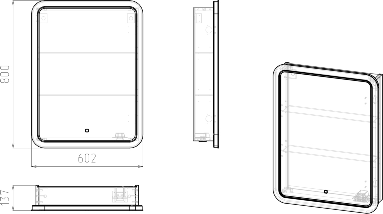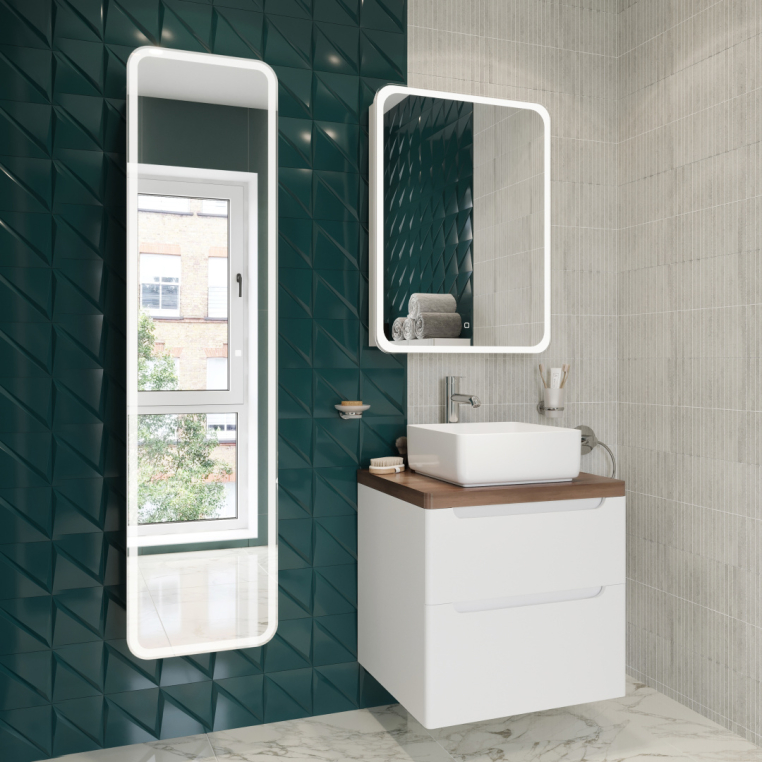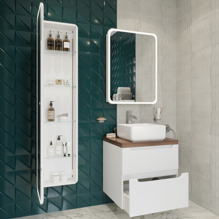 Зеркало-шкаф STWORKI Монтре 60 с подсветкой, сенсорное, светодиод в полотне, навесной, белой, МДФ