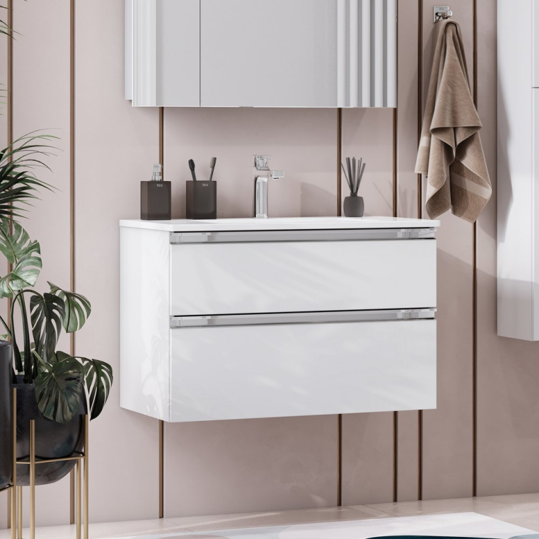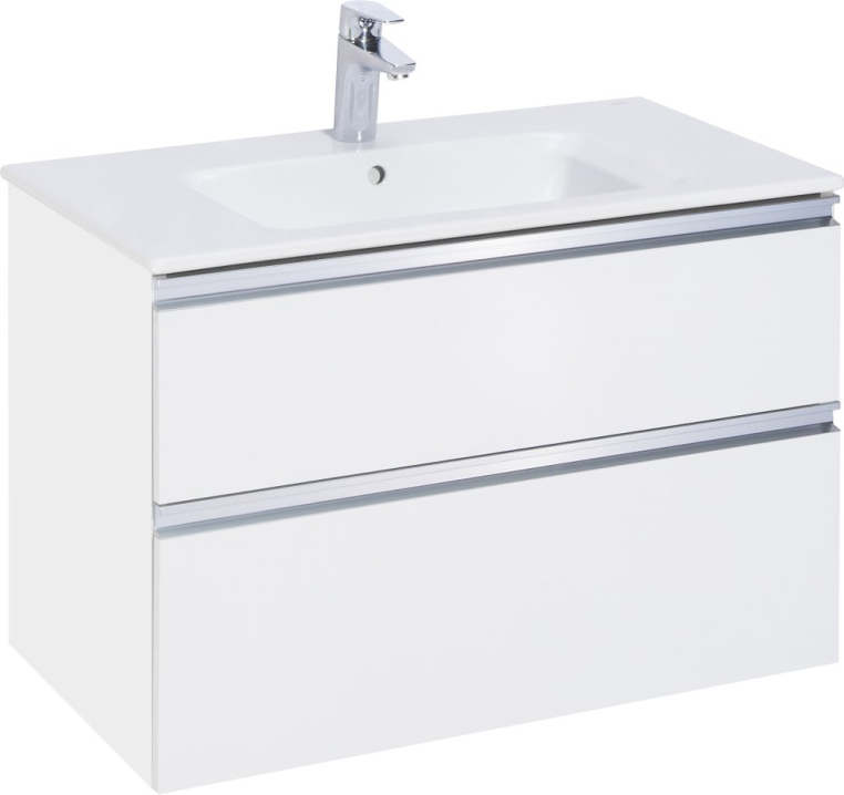 Модуль под раковину THE GAP в цвете белый глянец обладает универсальным современным дизайном и функциональностью. Материал корпуса и фасада тумбы влагостойкая ЛДСП. Металлическая ручка во всю ширину модуля удобна в использовании и вместе с направляющими с функцией soft-close делает процесс открывания ящиков легким и приятным. Нижняя часть ручки обработана под углом, что предотвращает скопление воды и пыли. Ручка защищает фасады модуля от попадания капель воды с раковины, а также защищает углы модуля от ударов и износа. Внутренняя отделка ящиков выполнена в цвете бежевый текстиль, приятна на ощупь и предотвращает скольжение предметов. Пространство верхнего ящика разделено на три части, что позволяет хранить предметы для ванной комнаты в идеальном порядке. Благодаря универсальному дизайну модули под раковину THE GAP могут сочетаться с различными вариантами зеркал и зеркальных шкафов из коллекций THE GAP ORIGINAL, ANETO, VICTORIA NORD. Сифон для раковины приобретается отдельно