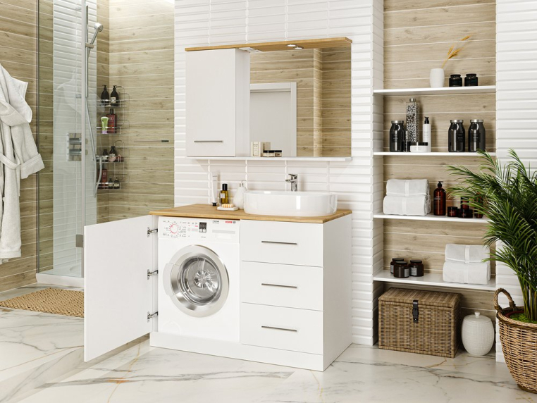 Петли на дверях с доводчиком, направляющие на ящиках без доводчиков Шариковые направляющие Нижняя съемная часть тумбы для установки стиральной машинки