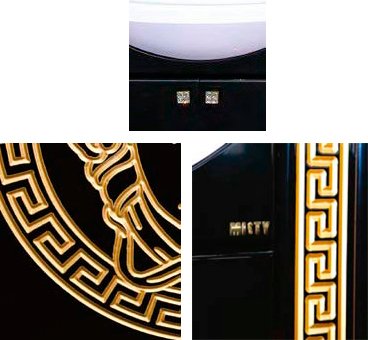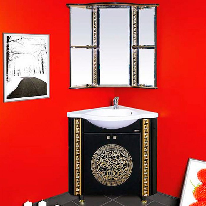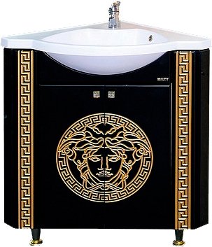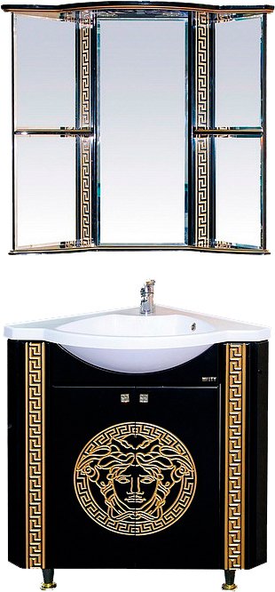 Роскошная угловая мебель для ванной Misty Olimpia Lux 60 совмещает в себе компактность и безупречную эстетичность. Элегантное оформление достигается путем патинирования фасадов и фрезеровки с античным орнаментом. Изюминку придают итальянские ручки, украшенные кристаллами. Тумба с двумя створками укомплектована доломитовой раковиной. Тройное зеркало снабжено шкафом и открытыми полочками для хранения. Максимальный комфорт создадут встроенные светильники по 16 А и система подогрева, которая исключает запотевание зеркального полотна. Надежность использования обеспечивают петли и доводчики марок Hettich и Blum