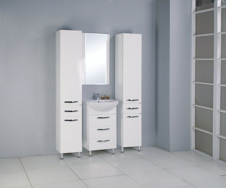 Мебель для ванной Акватон Ария Н 50 станет оптимальным выбором для тех, кто ищет гарнитур в небольшое помещение. При производстве этой мебели использованы только качественные материалы. Фасады выполнены из МДФ и покрыты влагостойкой эмалью, защищающей изделия от повреждений и воздействия влаги. В тумбе три выдвижных ящика – места для хранения косметики и бытовой химии будет достаточно. Влагостойкое зеркало отделано фацетом. В основе зеркального полотна – серебряная амальгама. Она гарантирует четкое отражение и долгий срок эксплуатации. Удобная и простая система крепления позволяет самостоятельно повесить зеркало на стену.Верхний ящик тумбы снабжен специальными разделителями, которые организуют пространство и отлично подходят для хранения мелких бытовых предметов. Тумба устанавливается на пол при помощи регулируемых ножек