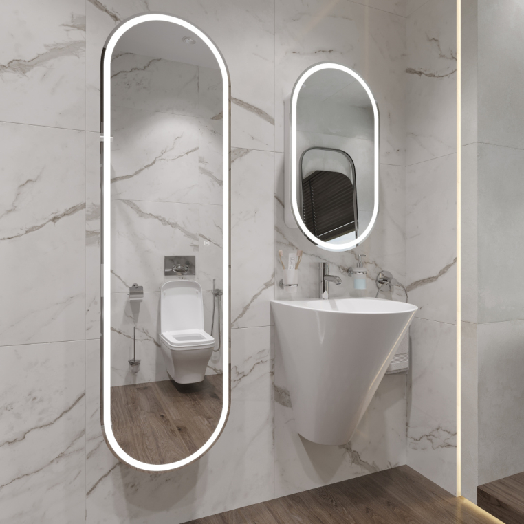 Оснащение зеркала: регулируемая подсветка / подвесы