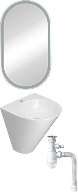 Комплект Раковина Stworki моноблок 48 100501-101 + Сифон для раковины Wirquin Минор с отводом для стиральной машины + Зеркало-шкаф Stworki Мальмё МВК