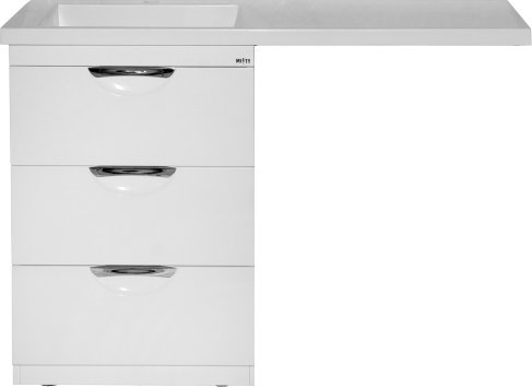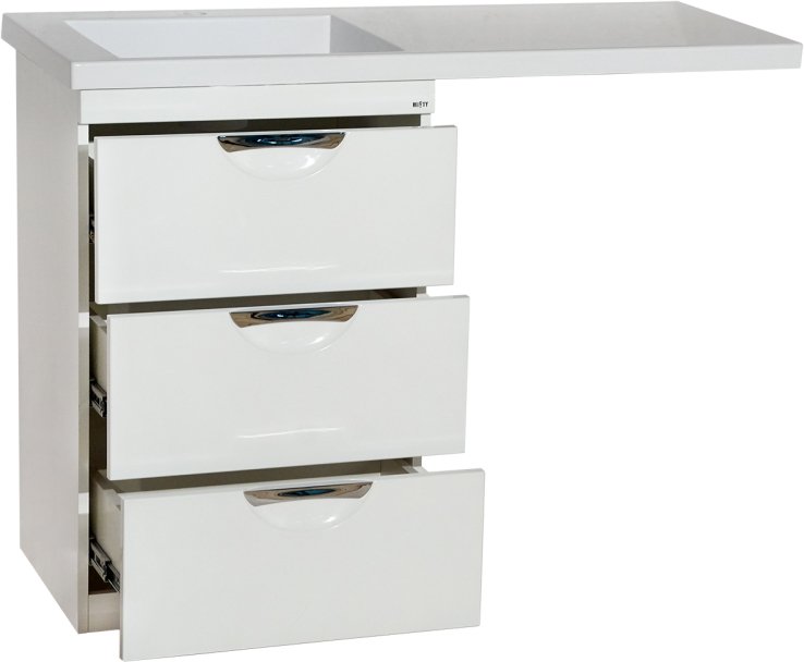 Мебельный гарнитур Misty «Куба» позволит с комфортном обустроить небольшую ванную. Комплект обеспечит достаточно места для хранения. В тумбе три вместительных ящика, а навесной шкафчик оснащен открытой полкой и двумя полочками за распашным фасадом. Благодаря фурнитуре с доводчиками ящики и дверцы закрываются мягко и плавно – без хлопков. Раковина выполнена из искусственного камня – долговечного, гигиеничного и простого в уходе материала. Широкая столешница позволяет вписать в интерьер стиральную машинку. Мебель изготовлена из МДФ, покрытой глянцевой эмалью, и устойчива к царапинам. Наличие подсветки и электрической розетки делает этот комплект практичным и удобным