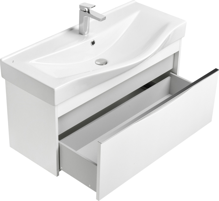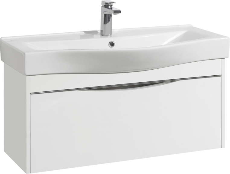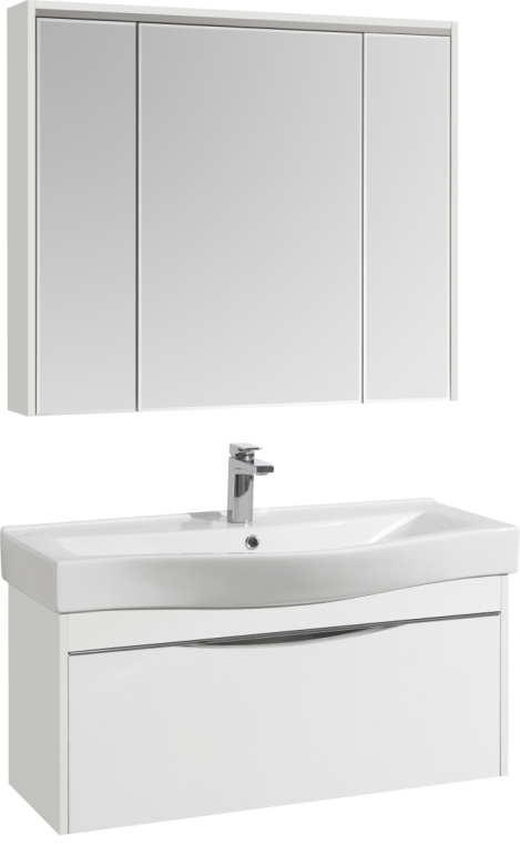 Комплект мебели STWORKI «Хельсинки 100» разработан для просторныхванных комнат. Элегантную пару в современном стиле формируюттрехстворчатый зеркальный шкафчик и подвесная тумба. Слой эмали,нанесенный на ДСП по технологии УФ-отверждения, надолго сохраняетглянцевый блеск мебели. А зеркало на основе серебряной амальгамы нетускнеет. В фасад тумбы встроена ручка, которая по форме повторяеточертания раковины. Благодаря системе доводчиков вместительный ящикна два отделения легко скользит по направляющим и не создает шумапри закрывании. Комплект дополнен полувстраиваемой раковиной Santekс широкой площадкой под смеситель.