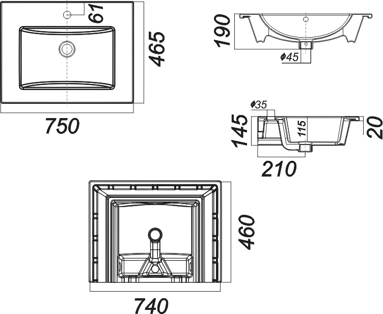 Мебельная раковина STWORKI Quadro 75