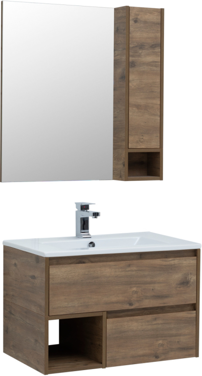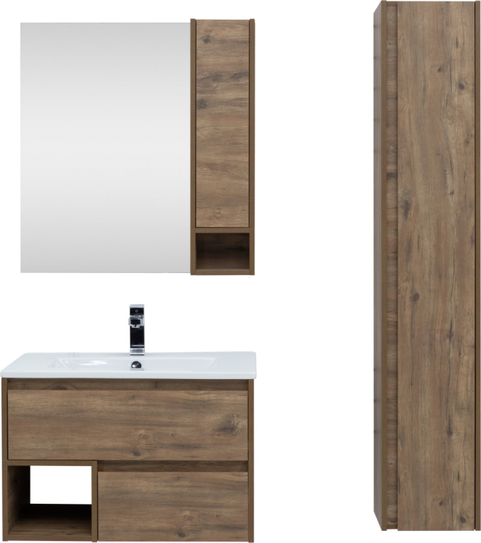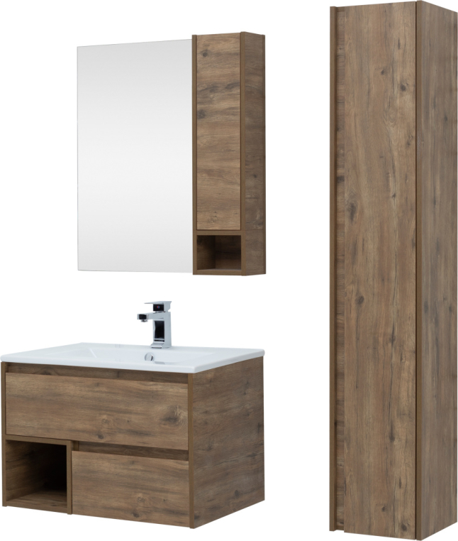 Мебельный гарнитур Stworki «Карлстад 75» поможет рациональноорганизовать пространство ванной комнаты. Место для хранения втумбе представлено двумя ящиками и открытой нишей, в зеркальномшкафу дополнительно предусмотрена полочка. Чтобы открыть дверцушкафа, достаточно нажать на фасад (Push-to-Open), ящики выдвигаютсяс помощью интегрированных ручек. Надежная фурнитура с доводчикамиHettich Quadro Silent System обеспечит тишину во времяиспользования ящиков и продлит срок службы мебели. Компактныйшкаф-пенал приобретается отдельно.