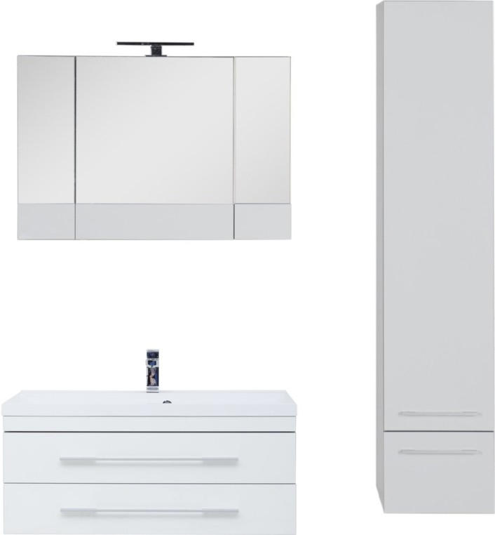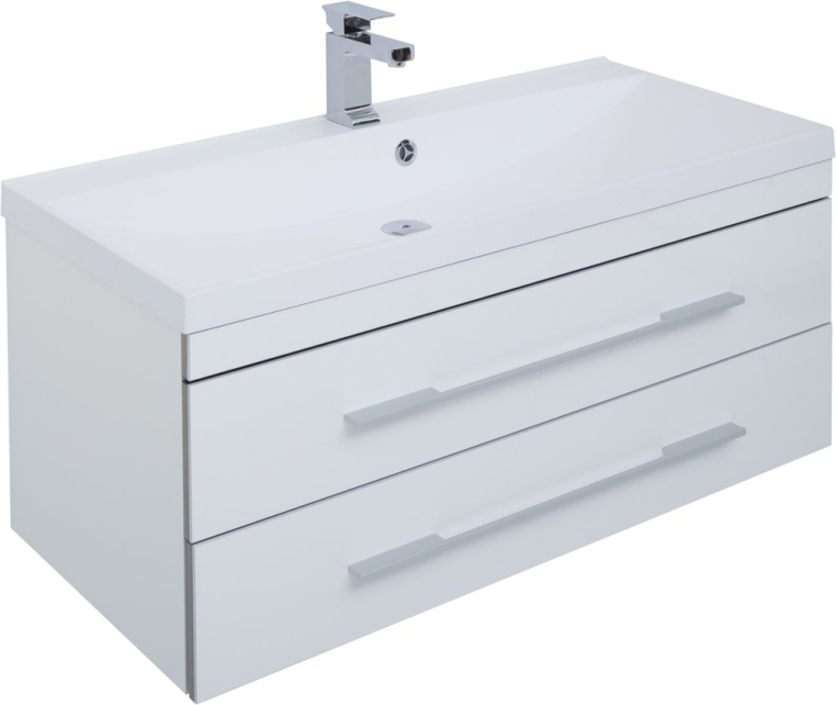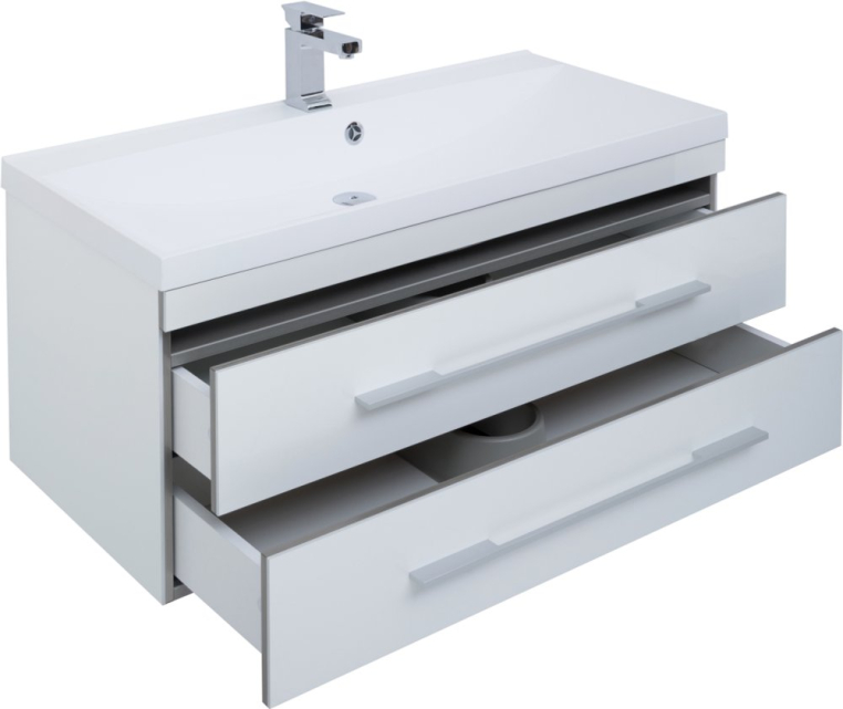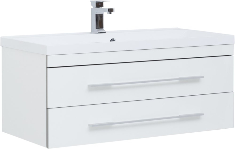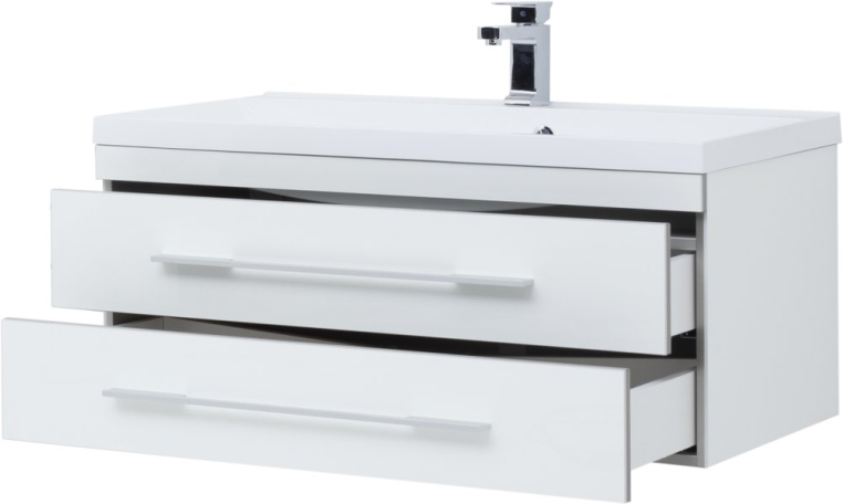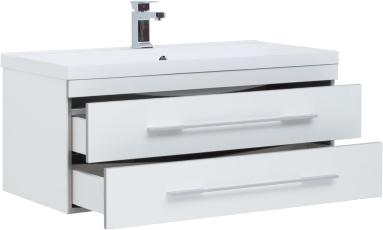 Широкий мебельный гарнитур «Верона» отличается практичным и продуманным дизайном. Комплект, в состав которого входят тумба с раковиной и просторный зеркальный шкаф, выполнен в строгой прямоугольной форме. Нейтральный белоснежный цвет композиции предоставляет свободу выбора оттенков в отделке. Модель можно использовать при реализации самых смелых креативных идей. Раковина «Нота» образует удобную умывальную зону. Вам не придется беспокоиться о брызгах воды и влажном поле после каждого умывания. Выбор материала – искусственный мрамор – упрощает уборку и уход за изделием. Главное, это достаточное экономичное решение при всех достоинствах, заимствованных у натурального камня. Тумба под раковиной состоит из двух частей: навесного модуля с двумя выдвижными ящиками и подвижной части, являющейся одновременно местом для хранения и широкой площадкой, которая может использоваться как подставка или сиденье. Большое зеркало-трельяж скрывает вместительный шкафчик, где удобно хранить гигиенические средства. Доводчики в петлях обеспечивают плавный ход створок, защищая зеркальный фасад от ударов