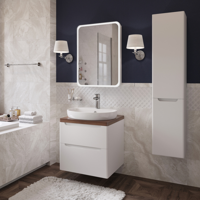 Мебель для ванной Stworki Берген 80 белая с темной столешницей, раковина DIWO Самара 0116
