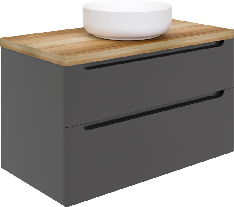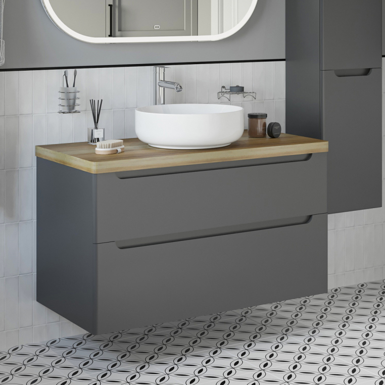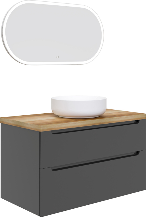 Мебель для ванной Stworki Берген 100 серая со светлой столешницей, раковина Moon 1