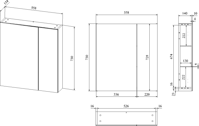 - Габариты (Ш Г В): 55,8x15,4x73 см