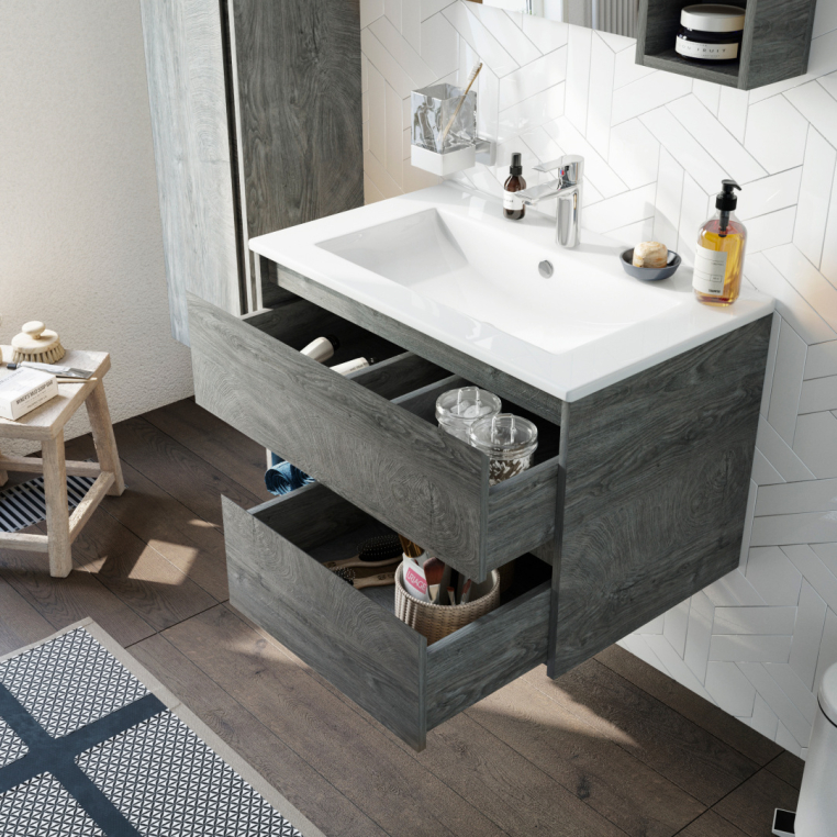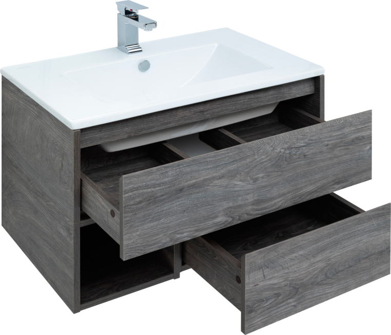 Для ценителей эксклюзива российский бренд Stworki выпустил линейкумебели «Карлстад 75». Тумба с двумя ящиками и зеркальный шкафоформлены аристократичным декором «дуб рошелье». Дверца шкафаработает по системе Push-to-Open и открывается нажатием. Ящикитумбы выдвигаются с помощью аккуратных интегрированных ручек.Немецкие направляющие Hettich Quadro Silent System с доводчикамиобеспечат тихое и стабильное движение ящиков. Для быстрого доступак самым нужным вещам в тумбе и шкафу предусмотрены открытые ниши.Чтобы увеличить зону хранения, можно дополнить тумбу компактнымпеналом – его ширина всего 30 см, а внутреннего пространствадостаточно, чтобы разместить всю бытовую химию или текстиль. Втумбу встроена фарфоровая прямоугольная раковина-столешница.