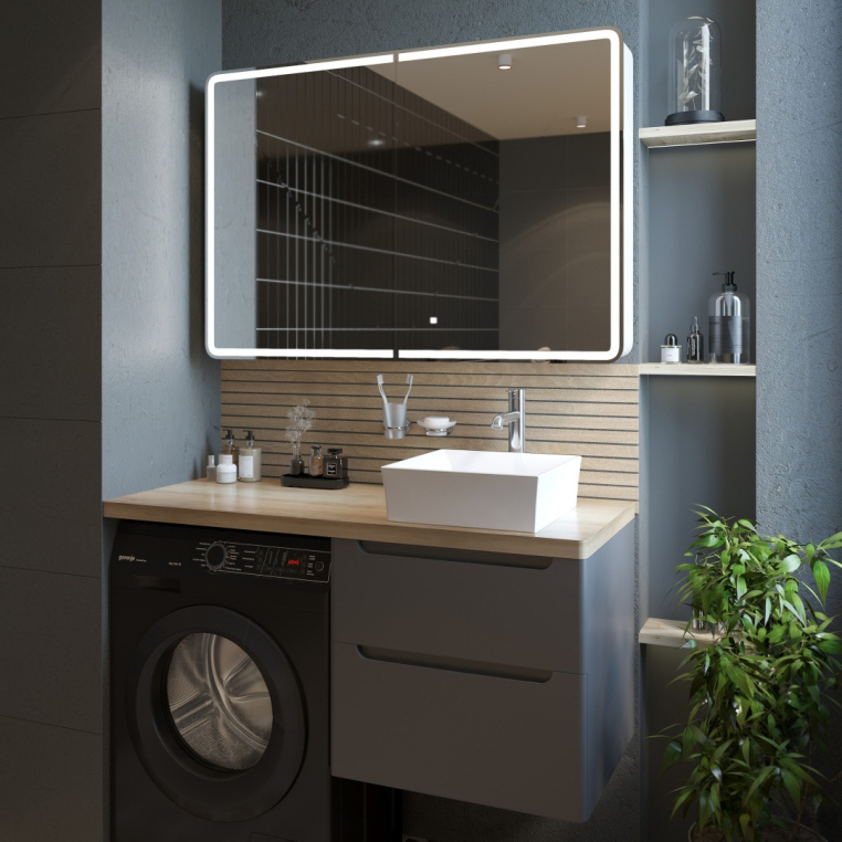 Мебель для ванной Stworki Берген 60 серая со светлой столешницей 122, раковина Bocchi Vessel 1173-061-0125