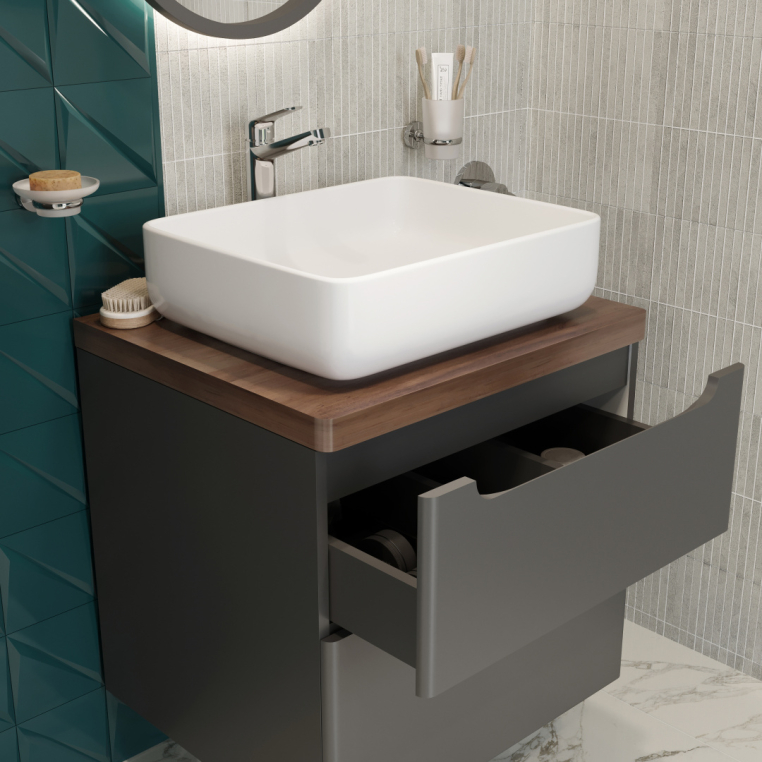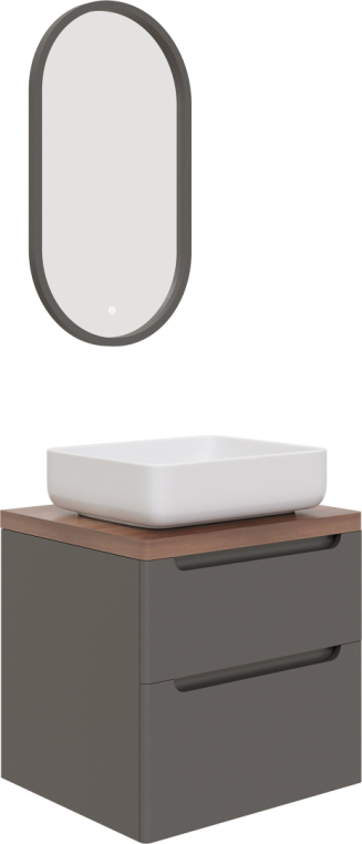 Мебель для ванной Stworki Берген 60 серая со светлой столешницей, раковина Soul 1