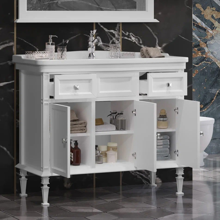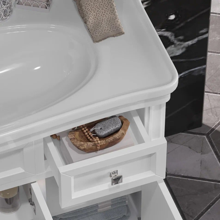 Коллекцию КАНТАРА характеризует филигранная фрезеровка ножек в итальянском стиле и шикарная глубокая керамическая раковина — столешница в размерах 85 или 105 см. Цветовая палитра — белый матовый или слоновая кость. Фурнитура с механизмами плавного закрывания Hettich (Германия). Серия создана по мотивам стилистики известного неприступного античного Византийского замка Кантара