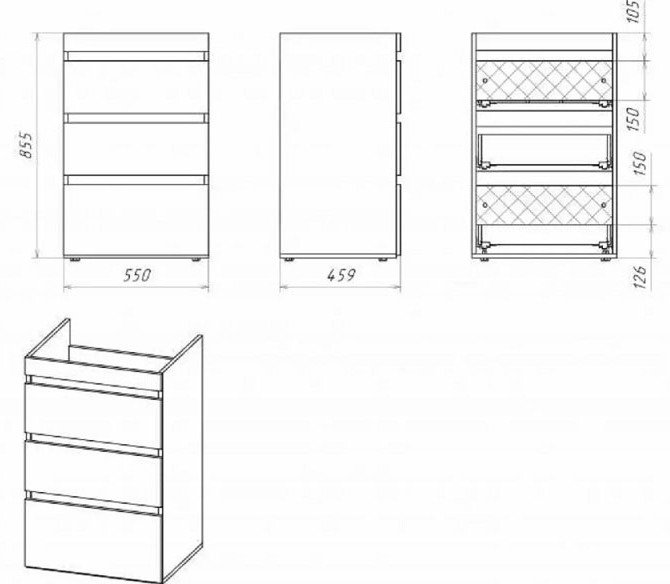 Тумба под стиральную машину с 3 ящиками Misty Фостер 55 Э-Фос01055-01Н3Я белая