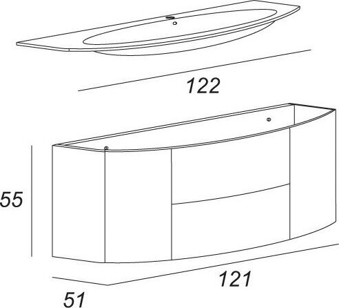 Тумба под раковину Cezares Eden 121 см 54408 с двумя выдвижными ящиками и двумя распашными створками.