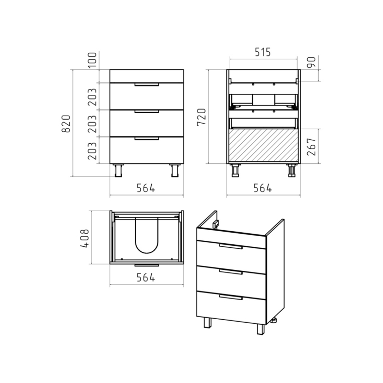 • Размер мебели, мм (ш/г/в): 625x435x540