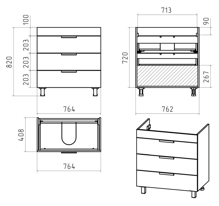 Комплектуется раковиной: Roca The Gap - 80 см