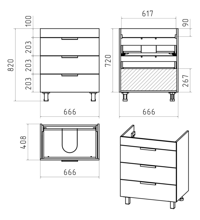 Опоры: передняя регулируемая опора 2 шт., задняя регулируемая опора 2 шт.