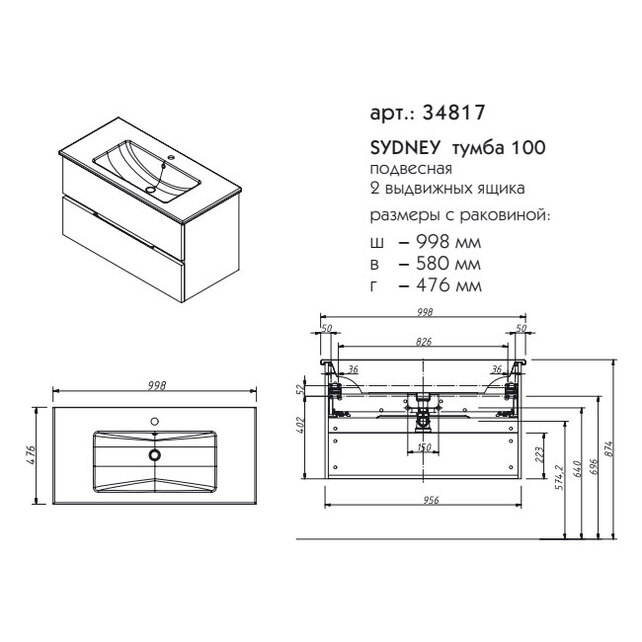 Тумба под раковину Caprigo Sydney 100 см белая 34817-В231