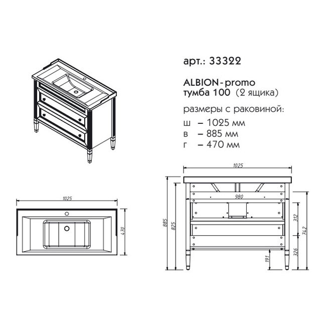 Тумба под раковину Caprigo Albion-promo 100 см bianco grigio 33322-В077