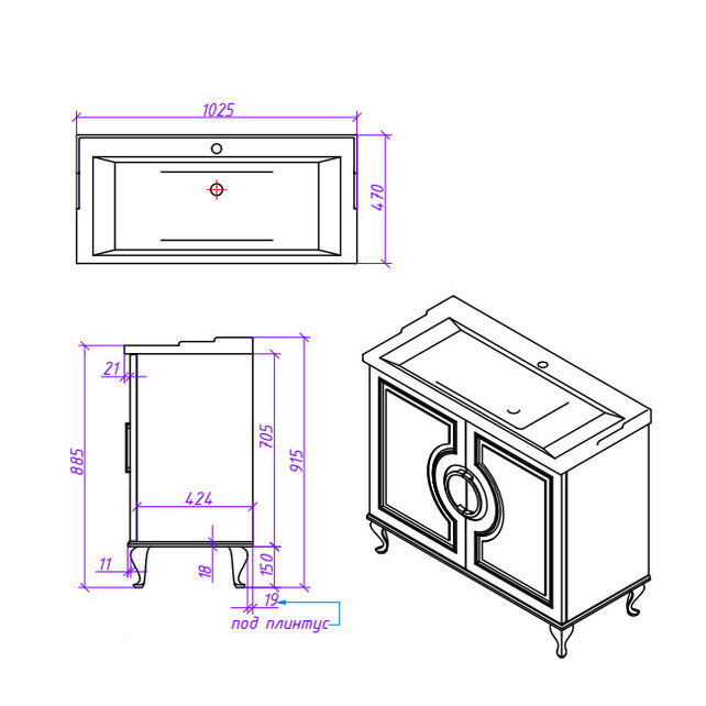 Тумба под раковину Caprigo Valletta 100 см бланж 35314-TP811