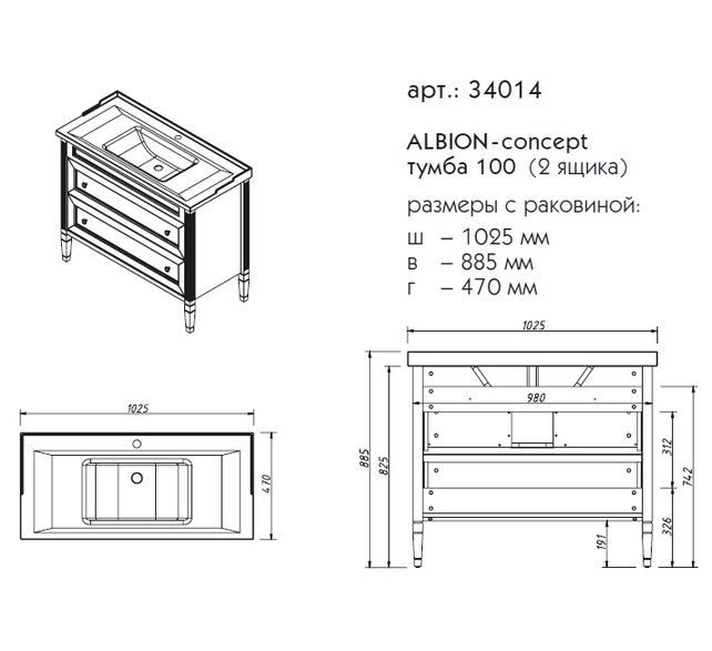 Тумба под раковину Caprigo Albion concept 100 см бланж 34014-TP811