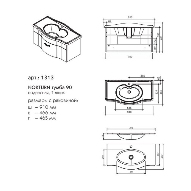 Тумба под раковину Caprigo Nokturn 90 см бланж 1313-TP811