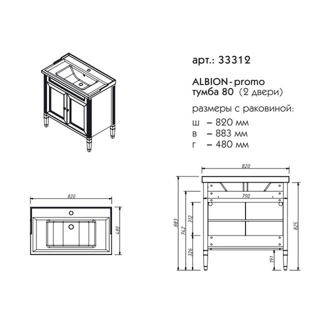 Тумба под раковину Caprigo Albion-promo 80 см bianco antico 33312-В002