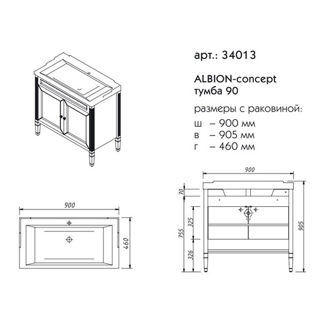 Тумба под раковину Caprigo Albion concept 90 см бланж 34013-TP811